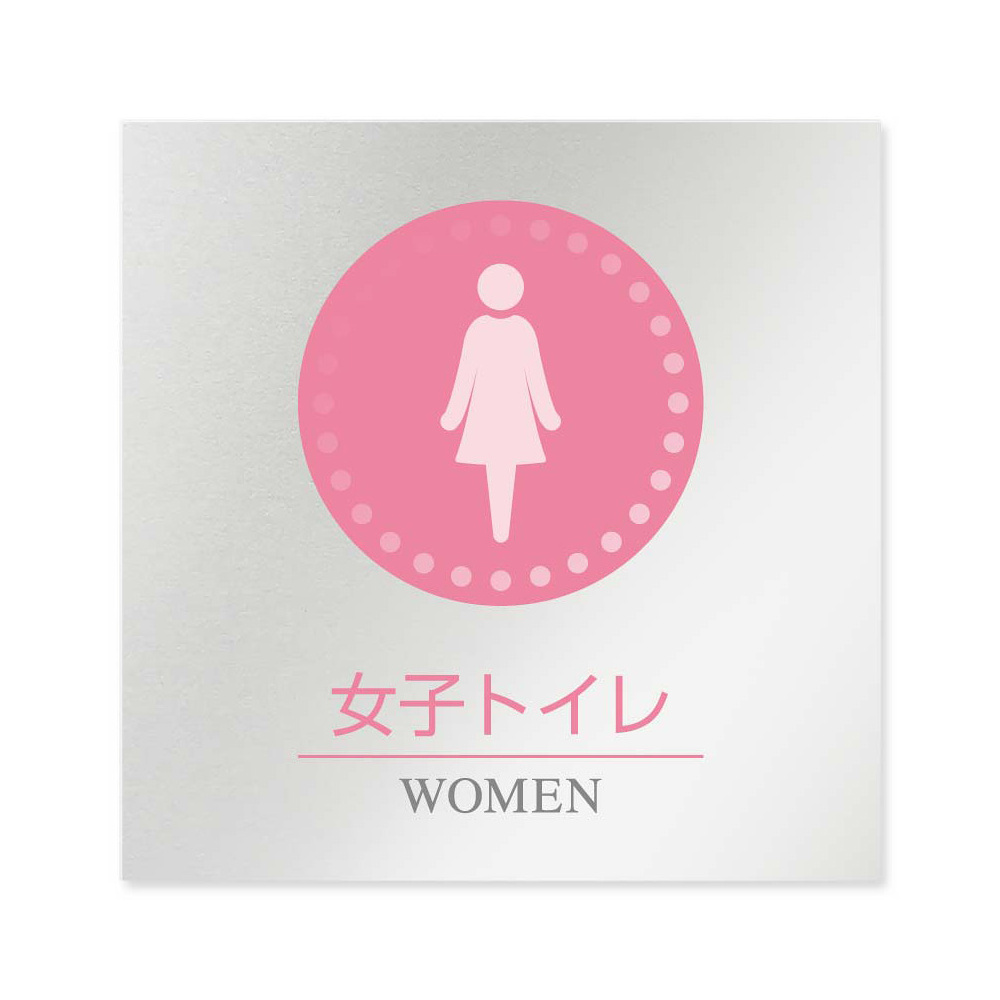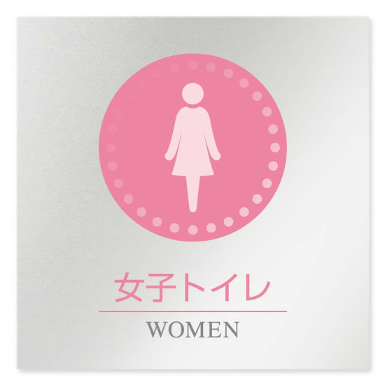 デザイナールームプレート 丸ピクト 女子トイレ1 アルミ板 W150×H150 (AL-1515-HB-HN1-0105)