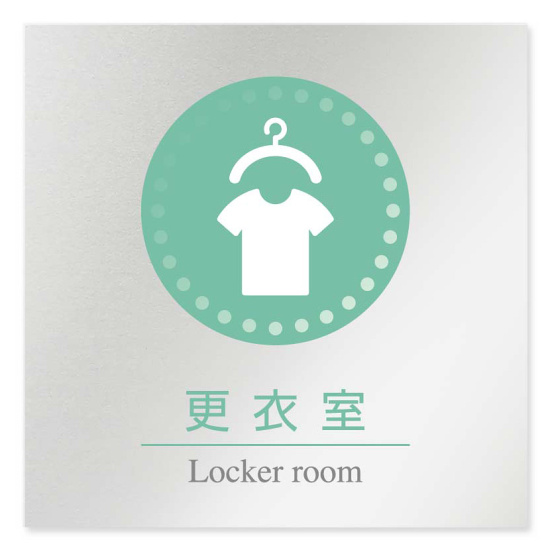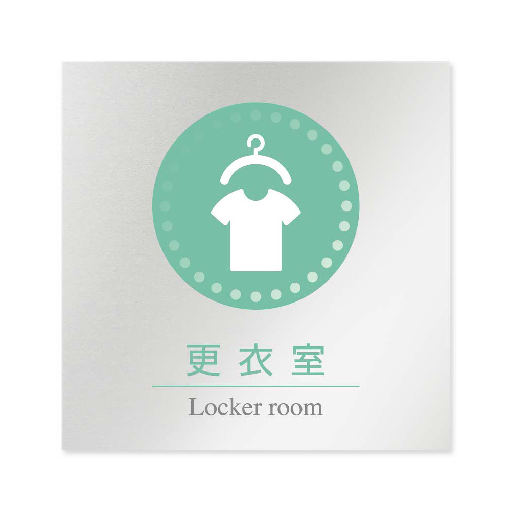 商品説明:デザイナールームプレート 丸ピクト 更衣室 アルミ板 W150×H150 (AL-1515-HB-HN1-0109)