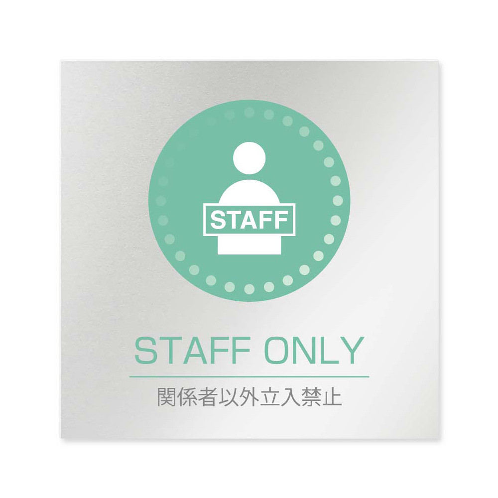 商品説明:デザイナールームプレート 丸ピクト Staff only アルミ板 W150×H150 (AL-1515-HB-HN1-0110)
