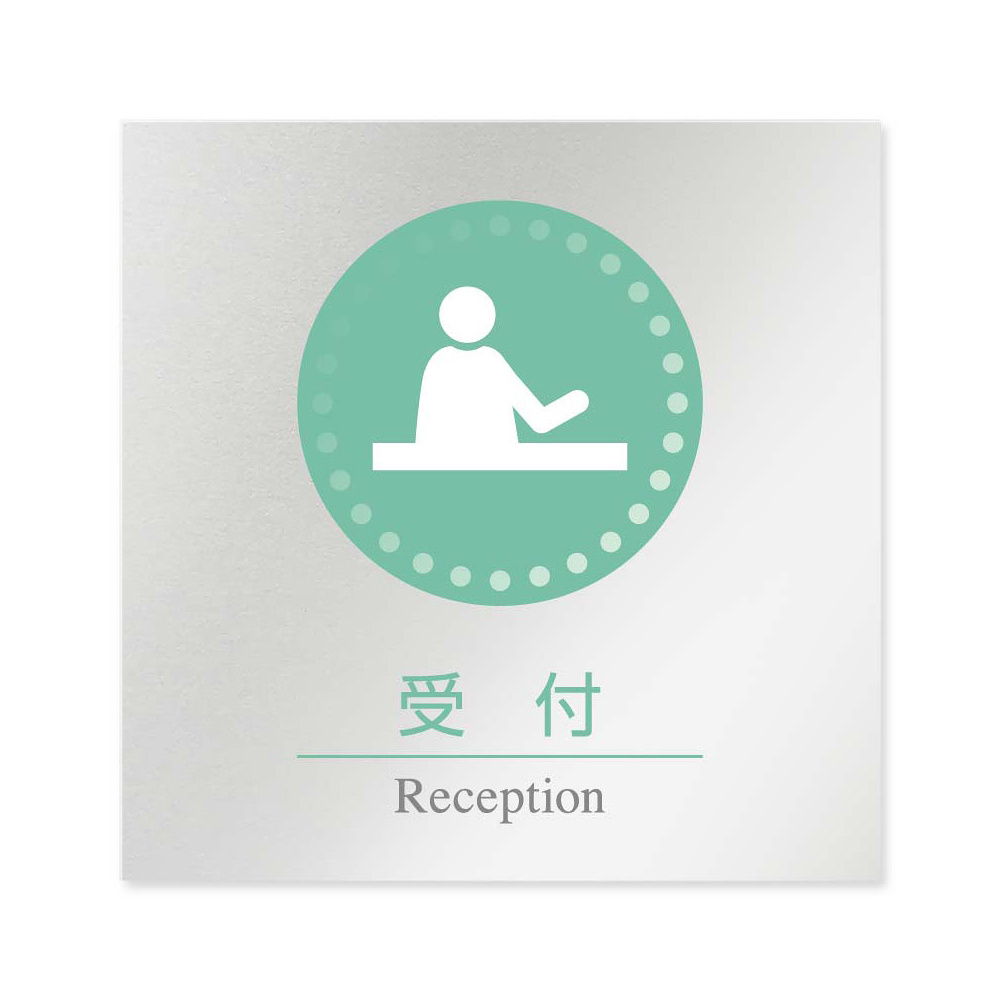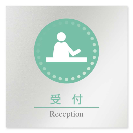 デザイナールームプレート 丸ピクト 受付 アルミ板 W150×H150 (AL-1515-HB-HN1-0112)