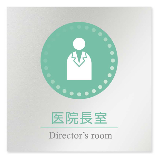 デザイナールームプレート 丸ピクト 医院長室 アルミ板 W150×H150 (AL-1515-HB-HN1-0117)
