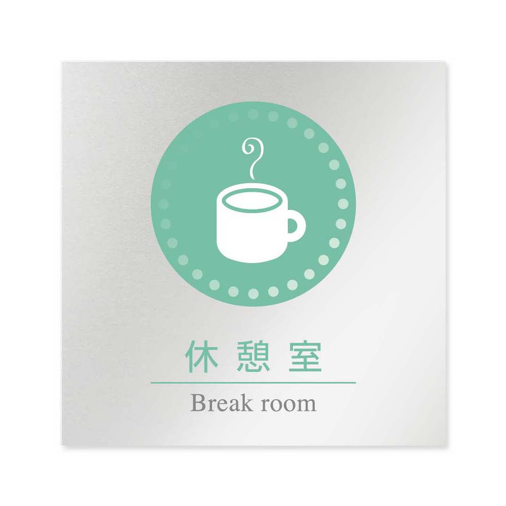デザイナールームプレート 丸ピクト 休憩室 アルミ板 W150×H150 (AL-1515-HB-HN1-0118)