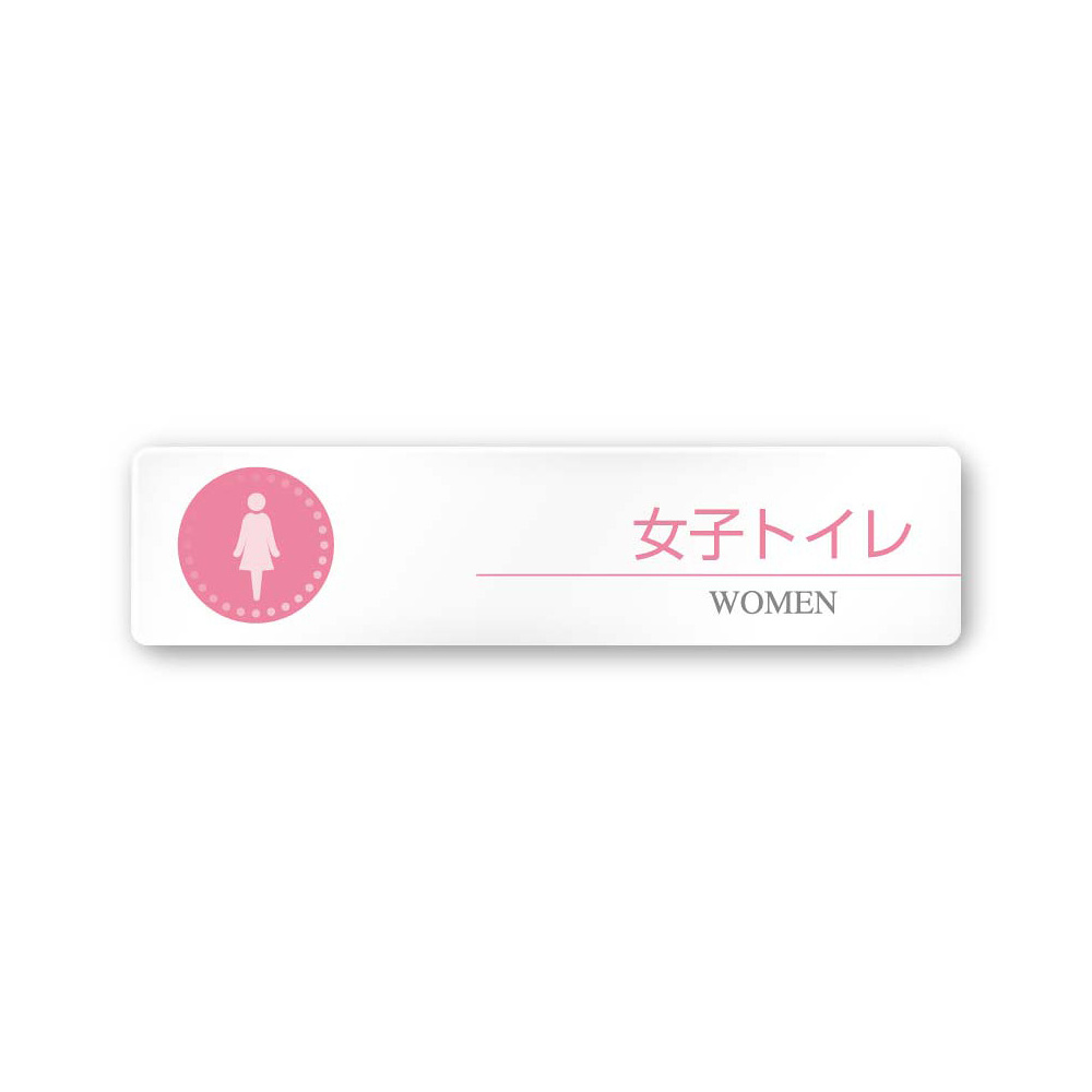 デザイナールームプレート 丸ピクト 女子トイレ1 白マットアクリル W250×H60 (AC-2560-HA-HN1-0205)
