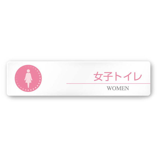 商品説明:デザイナールームプレート 丸ピクト 女子トイレ1 白マットアクリル W250×H60 (AC-2560-HA-HN1-0205)