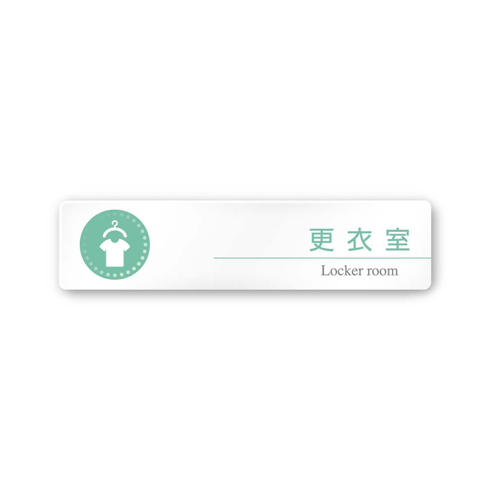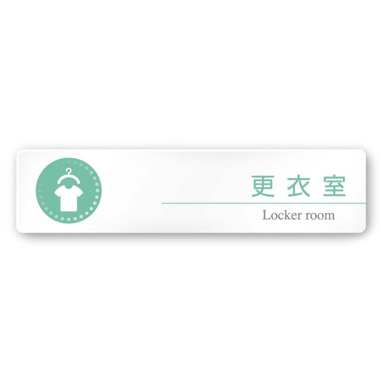 商品説明:デザイナールームプレート 丸ピクト 更衣室 白マットアクリル W250×H60 (AC-2560-HA-HN1-0209)