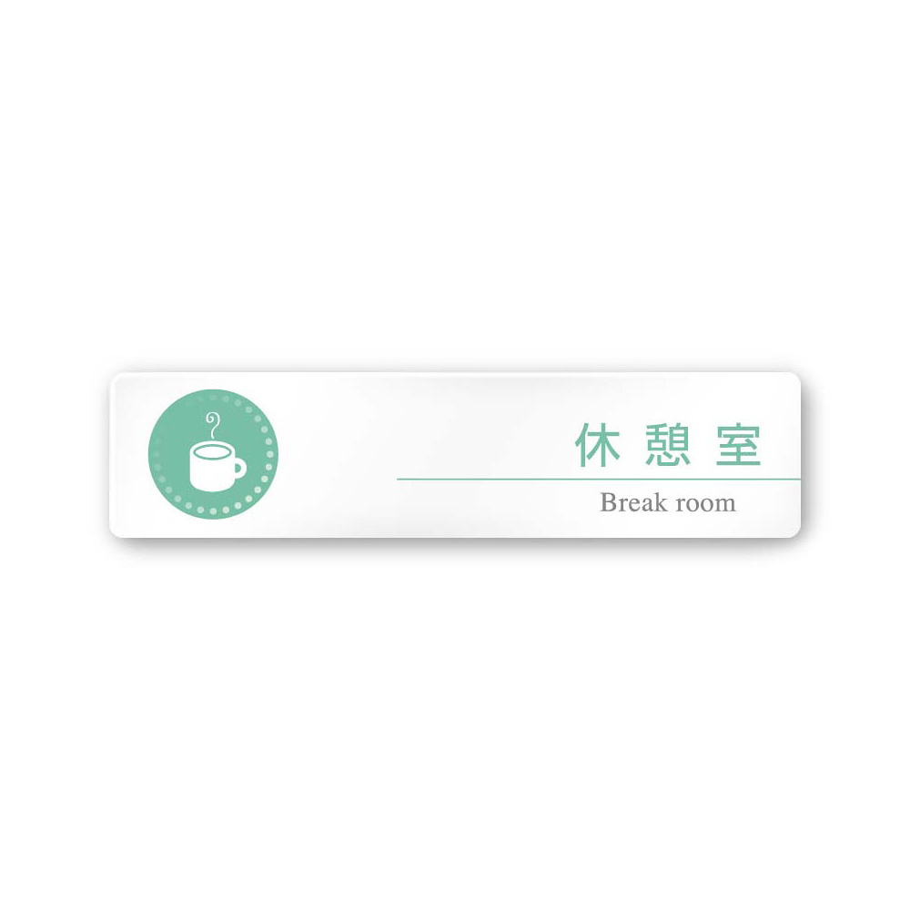 デザイナールームプレート 丸ピクト 休憩室 白マットアクリル W250×H60 (AC-2560-HA-HN1-0218)
