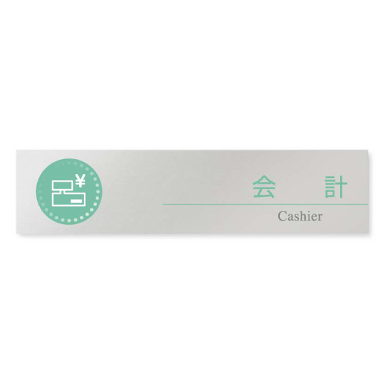 商品説明:デザイナールームプレート 丸ピクト 会計 アルミ板 W250×H60 (AL-2560-HB-HN1-0216)