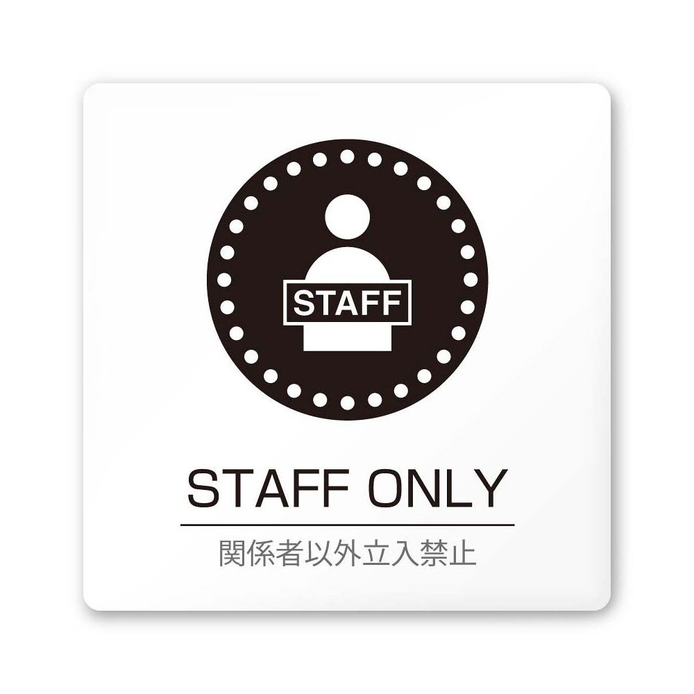 商品説明:デザイナールームプレート 丸ピクト Staff only 白マットアクリル W150×H150 (AC-1515-HA-HN2-0110)