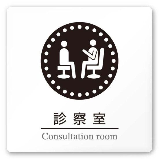 - デザイナールームプレート 丸ピクト 診察室 白マットアクリル W150×H150 (AC-1515-HA-HN2-0113)