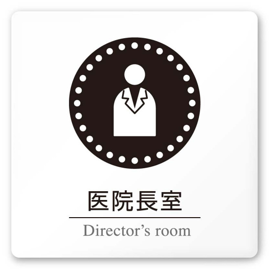 デザイナールームプレート 丸ピクト 医院長室 白マットアクリル W150×H150 (AC-1515-HA-HN2-0117)