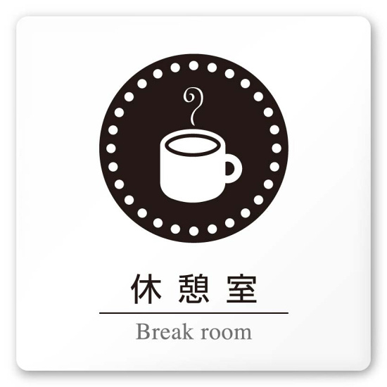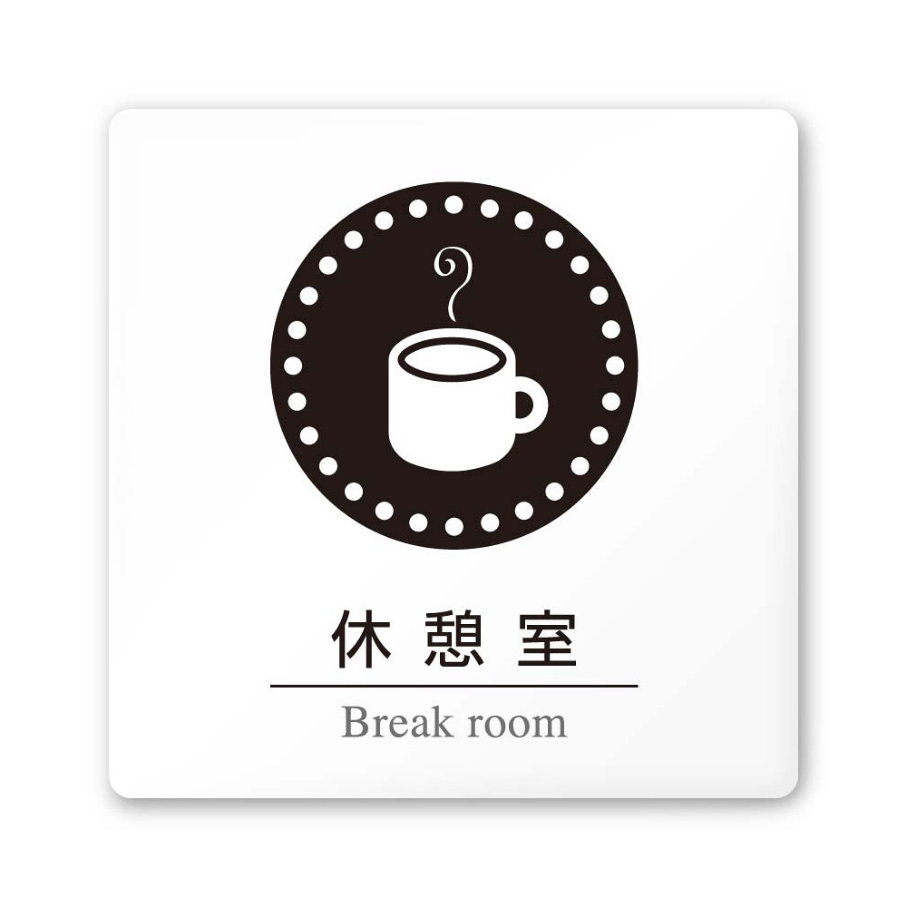 デザイナールームプレート 丸ピクト 休憩室 白マットアクリル W150×H150 (AC-1515-HA-HN2-0118)