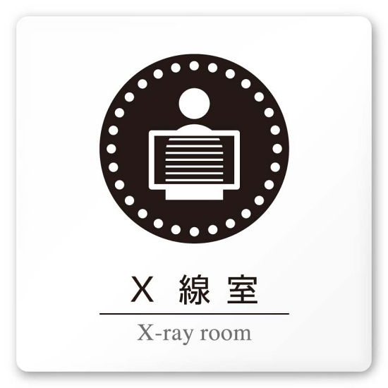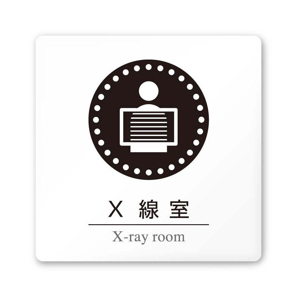 商品説明:デザイナールームプレート 丸ピクト X線室 白マットアクリル W150×H150 (AC-1515-HA-HN2-0119)