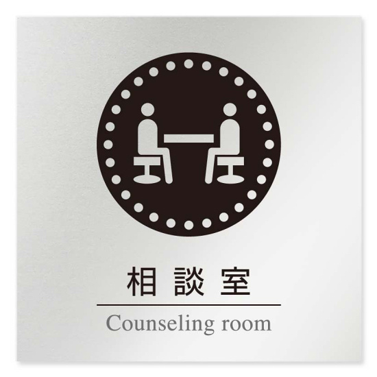 デザイナールームプレート 丸ピクト 相談室 アルミ板 W150×H150 (AL-1515-HB-HN2-0114)