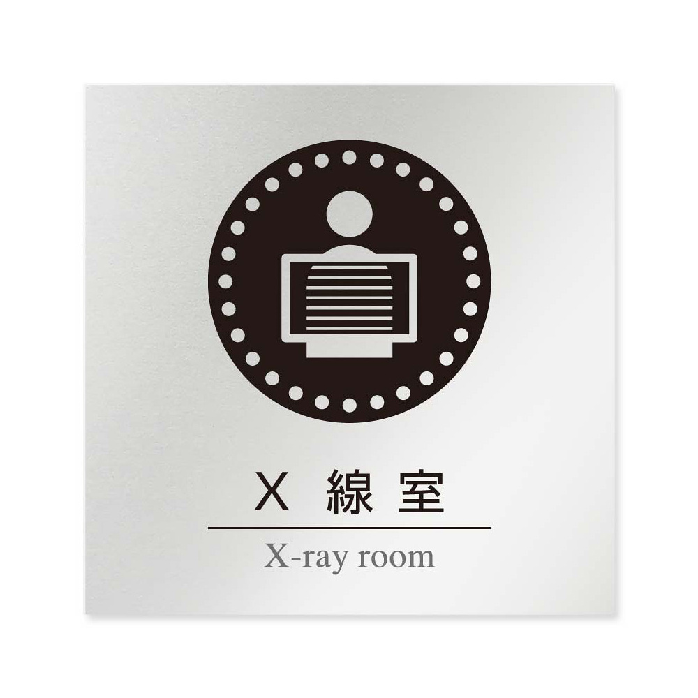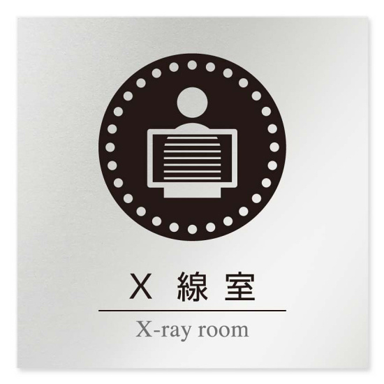デザイナールームプレート 丸ピクト X線室 アルミ板 W150×H150 (AL-1515-HB-HN2-0119)