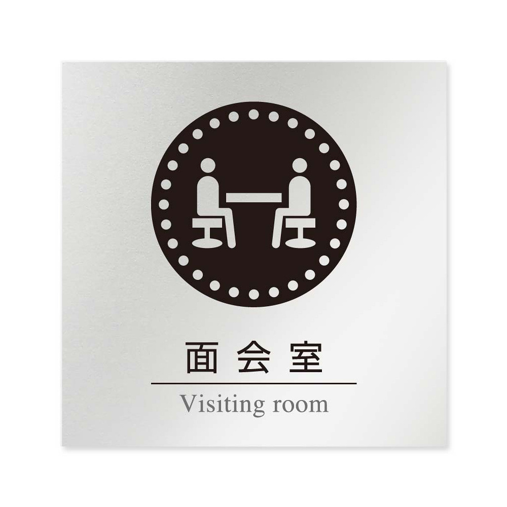 商品説明:デザイナールームプレート 丸ピクト 面会室 アルミ板 W150×H151 (AL-1515-HA-HN2-0120)
