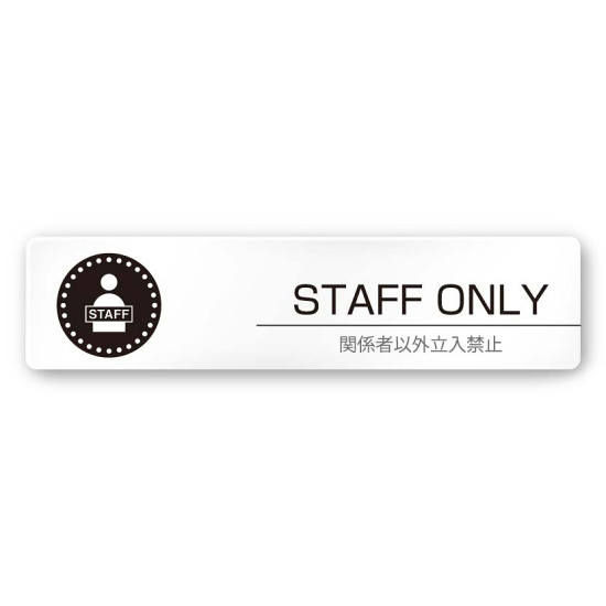 商品説明:デザイナールームプレート 丸ピクト Staff only 白マットアクリル W250×H60 (AC-2560-HA-HN2-0210)