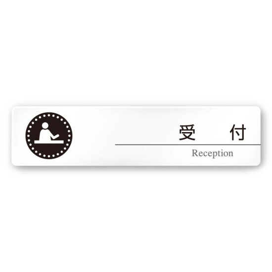 デザイナールームプレート 丸ピクト 受付 白マットアクリル W250×H60 (AC-2560-HA-HN2-0212)