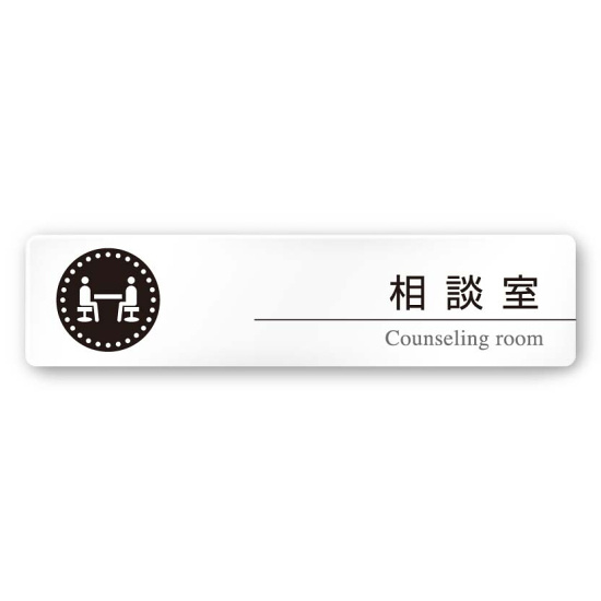 デザイナールームプレート 丸ピクト 相談室 白マットアクリル W250×H60 (AC-2560-HA-HN2-0214)