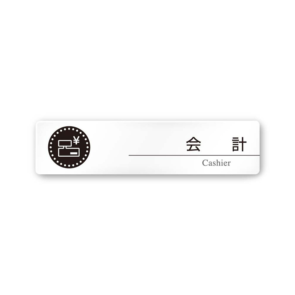 デザイナールームプレート 丸ピクト 会計 白マットアクリル W250×H60 (AC-2560-HA-HN2-0216)