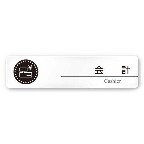 - デザイナールームプレート 丸ピクト 会計 白マットアクリル W250×H60 (AC-2560-HA-HN2-0216)