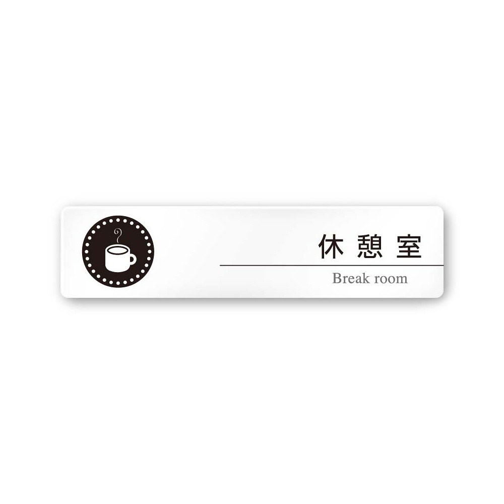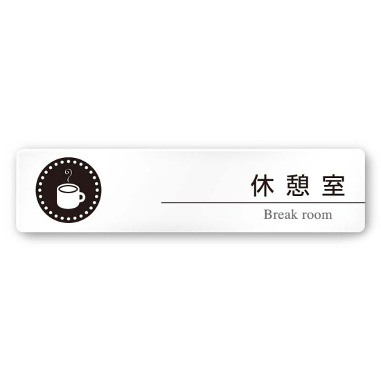 デザイナールームプレート 丸ピクト 休憩室 白マットアクリル W250×H60 (AC-2560-HA-HN2-0218)