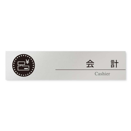 商品説明:デザイナールームプレート 丸ピクト 会計 アルミ板 W250×H60 (AL-2560-HB-HN2-0216)