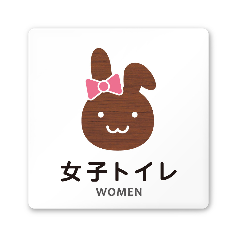 デザイナールームプレート どうぶつデザイン 女子トイレ1 白マットアクリル W150×H150 (AC-1515-HA-HS1-0105)