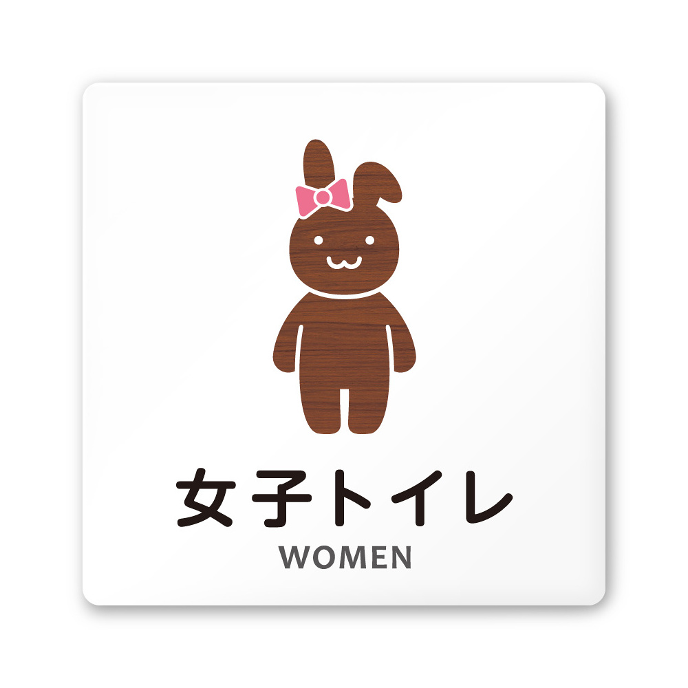 デザイナールームプレート どうぶつデザイン 女子トイレ2 白マットアクリル W150×H150 (AC-1515-HA-HS1-0106)