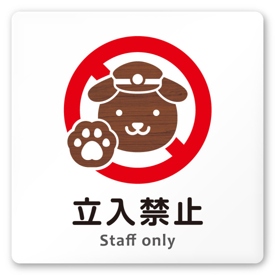 商品説明:デザイナールームプレート どうぶつデザイン Staff only 白マットアクリル W150×H150 (AC-1515-HA-HS1-0110)