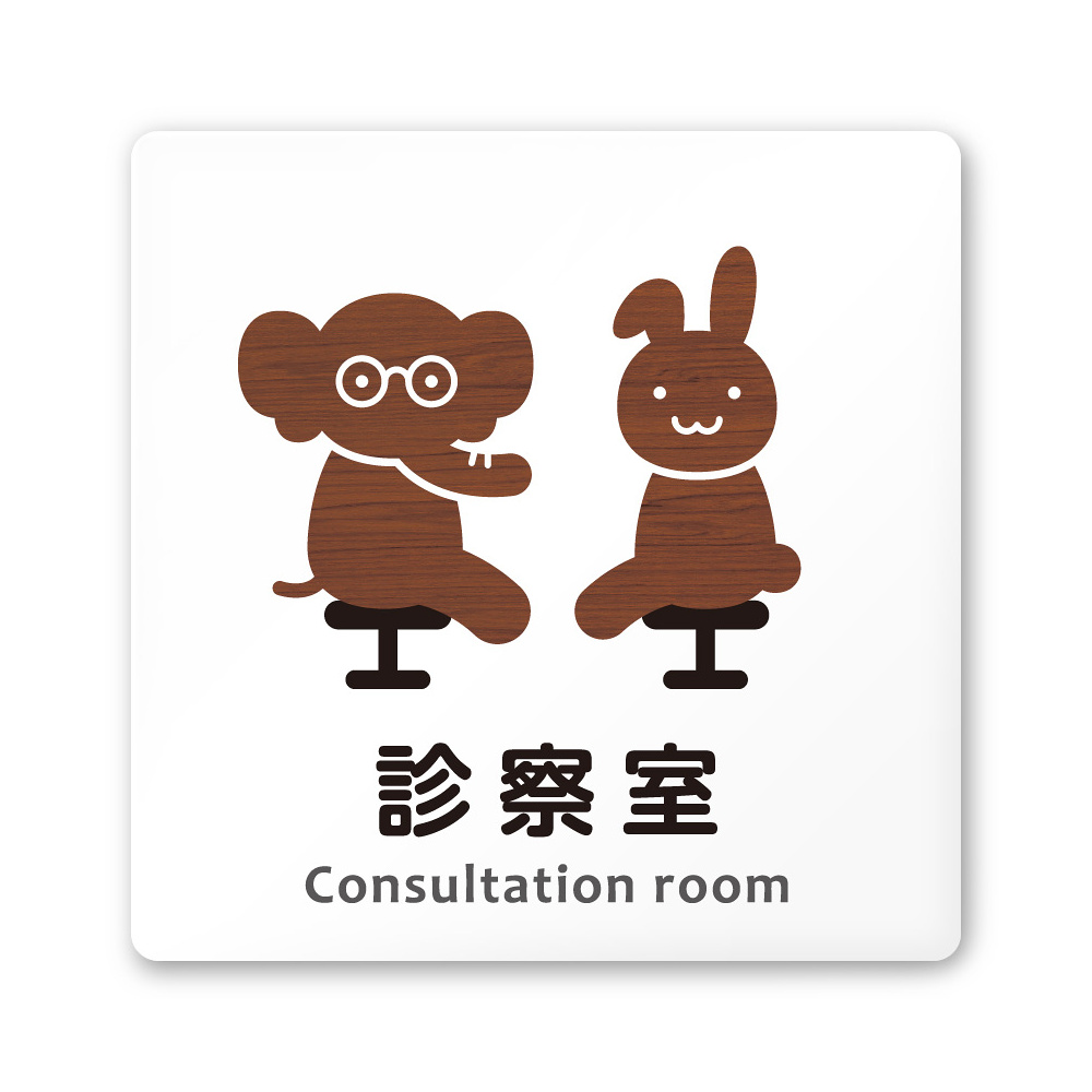 デザイナールームプレート どうぶつデザイン 診察室 白マットアクリル W150×H150 (AC-1515-HA-HS1-0113)
