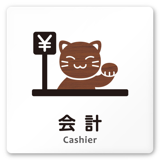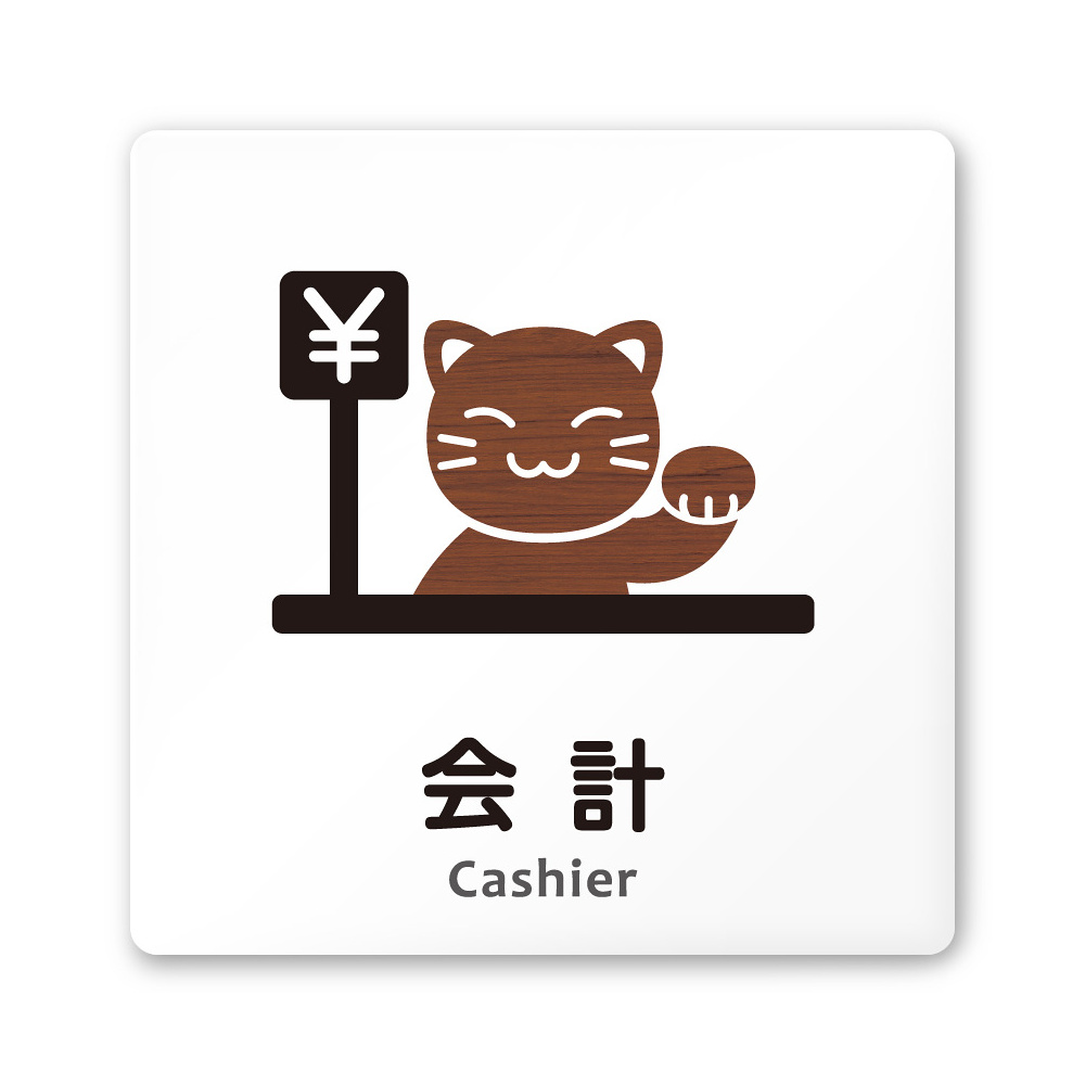 デザイナールームプレート どうぶつデザイン 会計 白マットアクリル W150×H150 (AC-1515-HA-HS1-0116)
