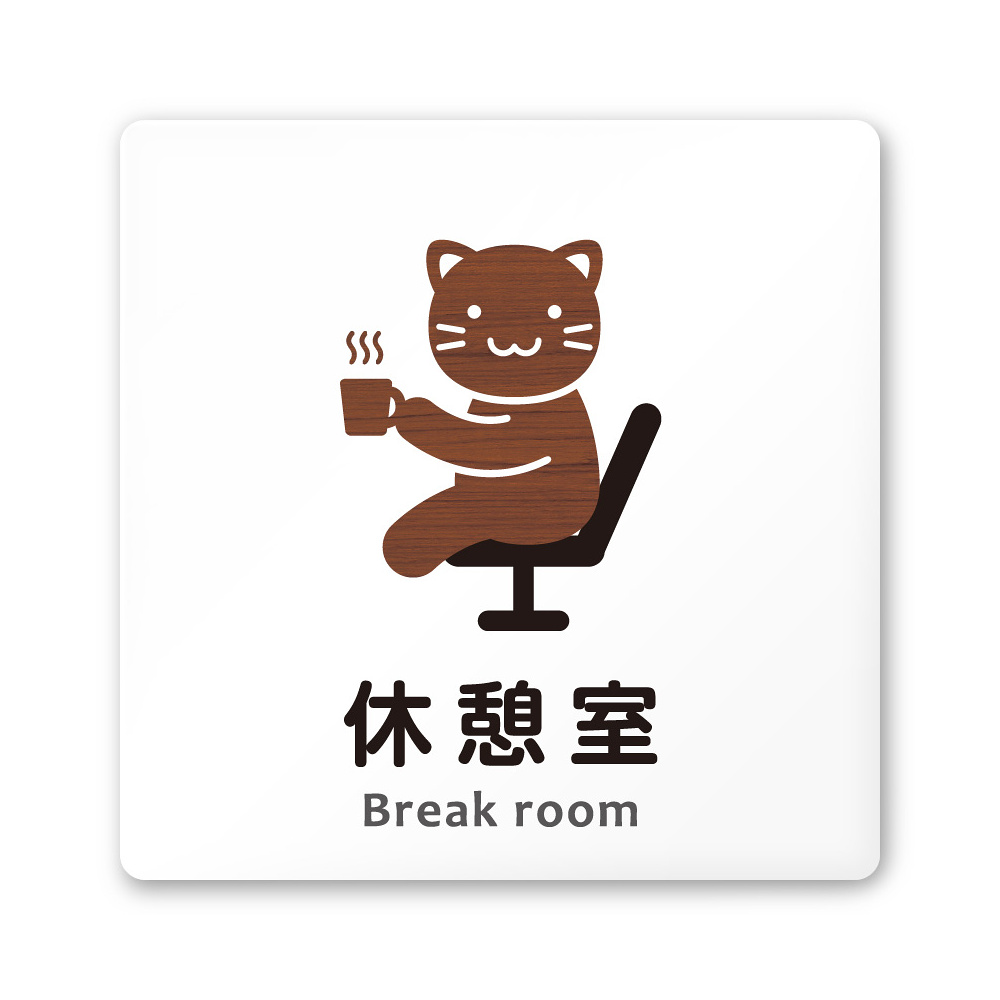 商品説明:デザイナールームプレート どうぶつデザイン 休憩室 白マットアクリル W150×H150 (AC-1515-HA-HS1-0118)