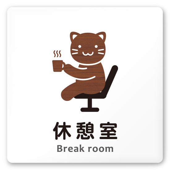 デザイナールームプレート どうぶつデザイン 休憩室 白マットアクリル W150×H150 (AC-1515-HA-HS1-0118)