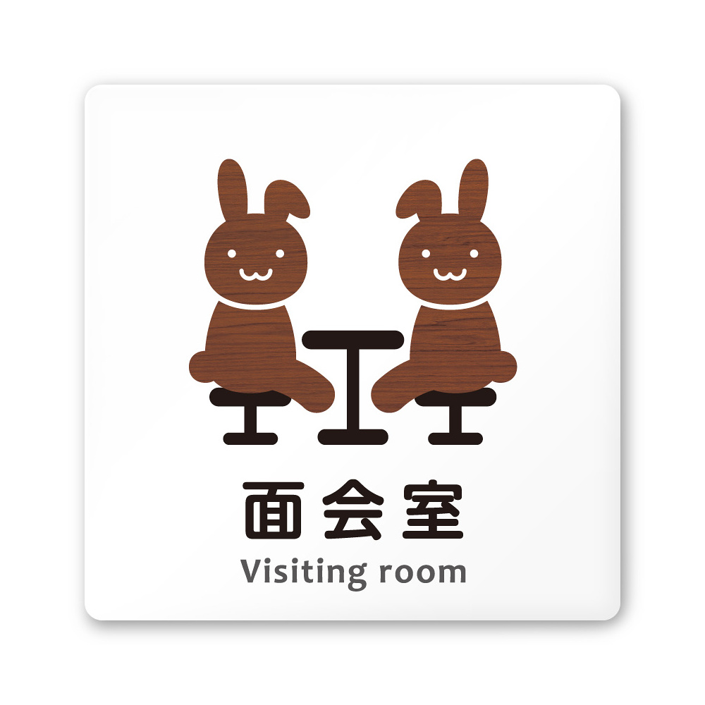 デザイナールームプレート どうぶつデザイン 面会室 白マットアクリル W150×H150 (AC-1515-HB-HS1-0120)