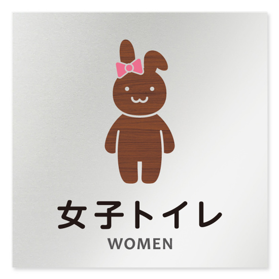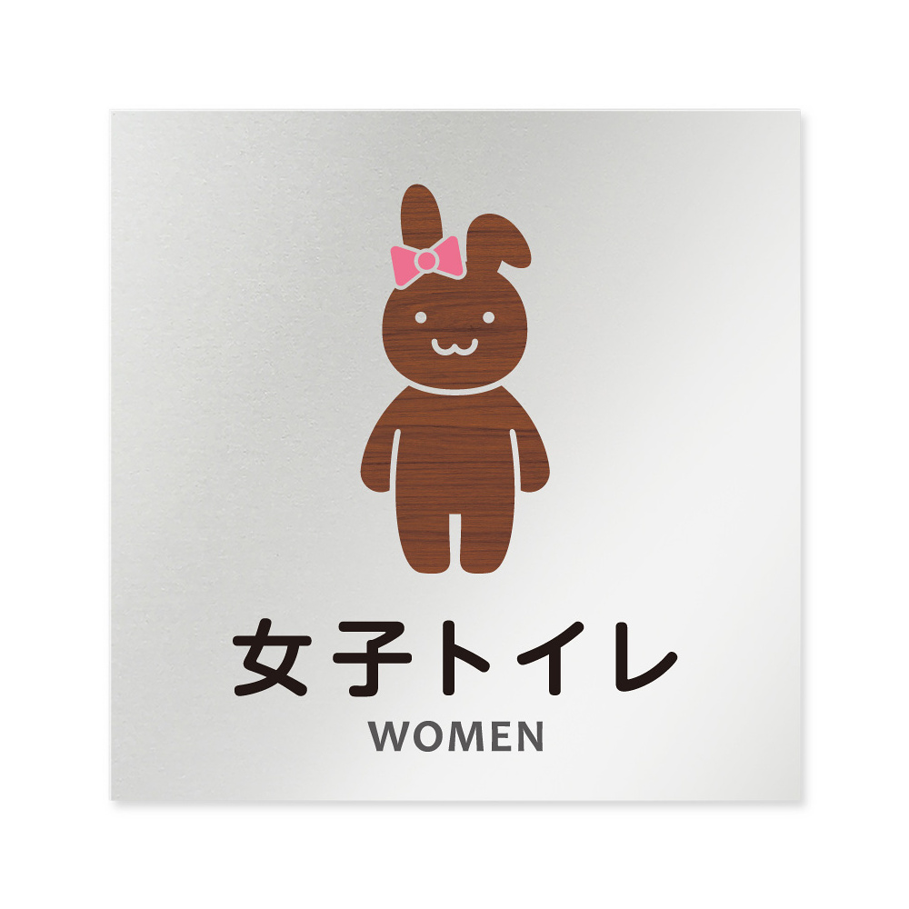 デザイナールームプレート どうぶつデザイン 女子トイレ2 アルミ板 W150×H150 (AL-1515-HB-HS1-0106)