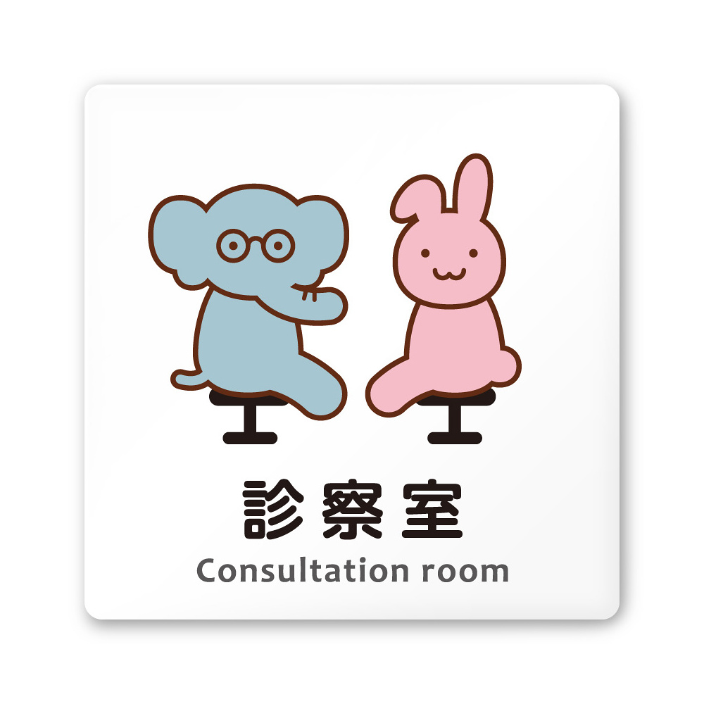 デザイナールームプレート どうぶつカラー 診察室 白マットアクリル W150×H150 (AC-1515-HA-HS2-0113)