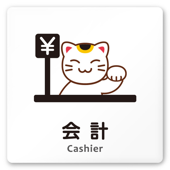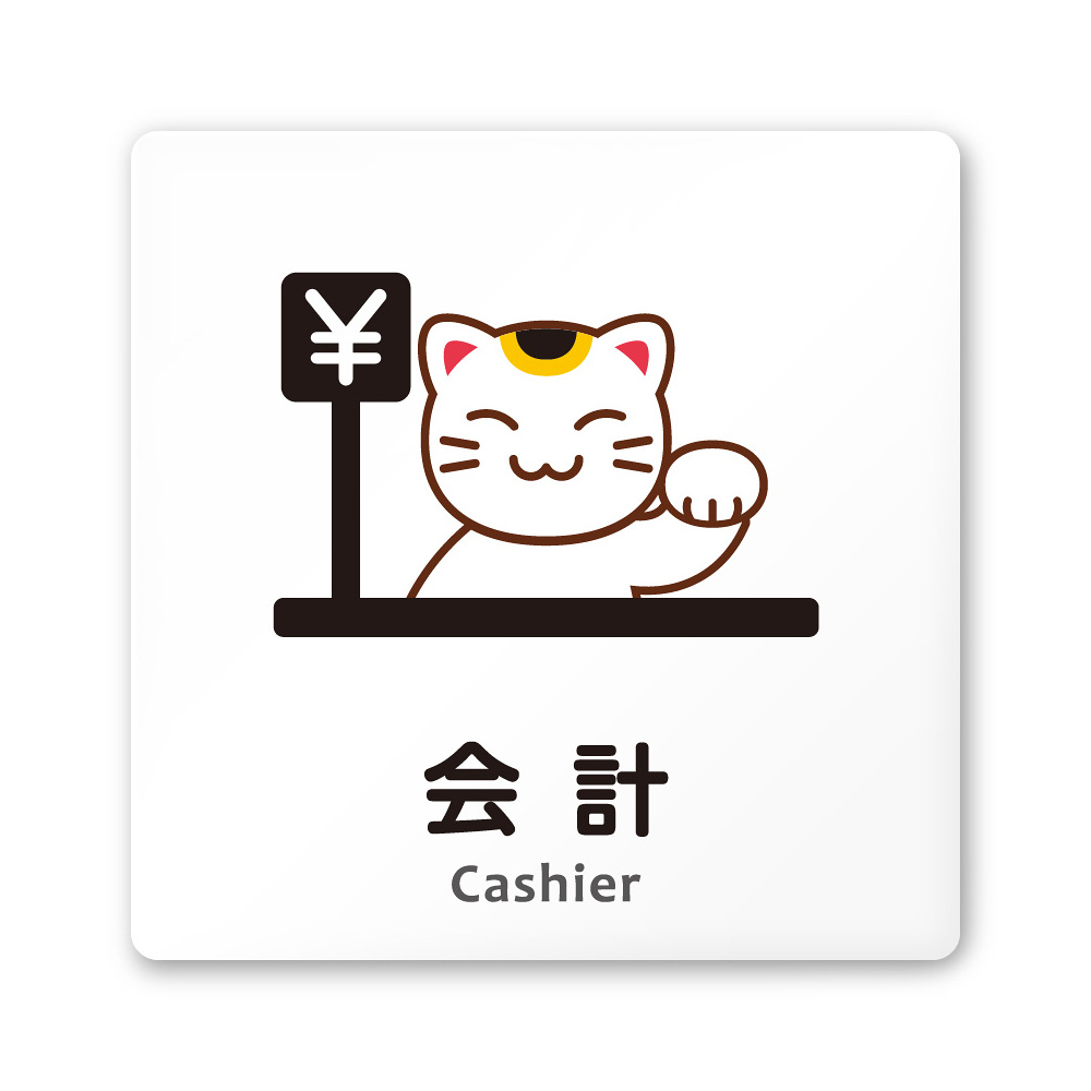 商品説明:デザイナールームプレート どうぶつカラー 会計 白マットアクリル W150×H150 (AC-1515-HA-HS2-0116)