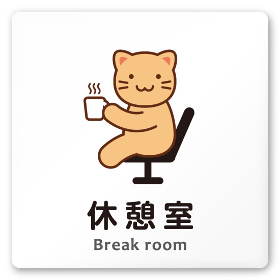 デザイナールームプレート どうぶつカラー 休憩室 白マットアクリル W150×H150 (AC-1515-HA-HS2-0118)