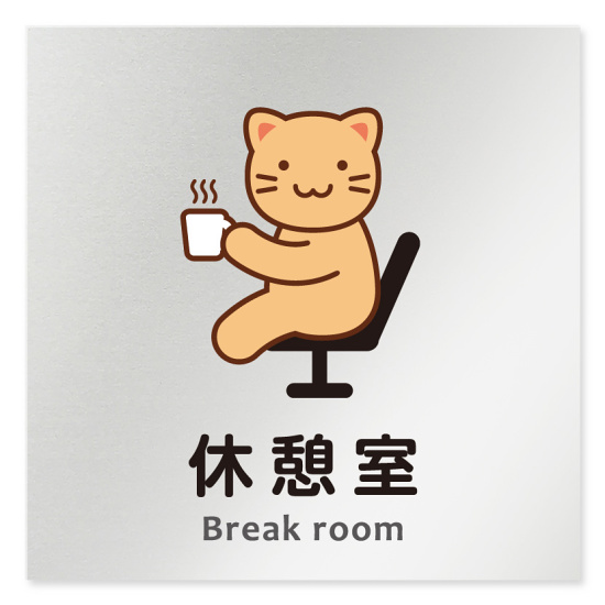 デザイナールームプレート どうぶつカラー 休憩室 アルミ板 W150×H150 (AL-1515-HB-HS2-0118)