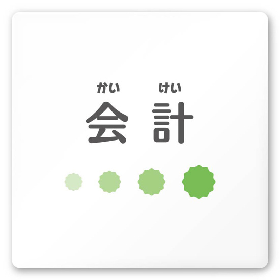 デザイナールームプレート ポップ 会計 白マットアクリル W150×H150 (AC-1515-HA-IN1-0116)