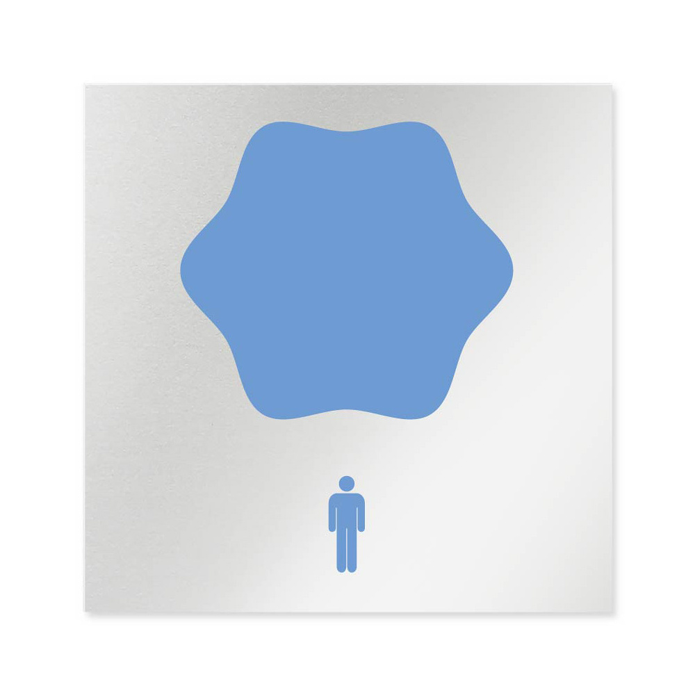 商品説明:デザイナールームプレート ポップ 男子トイレ1 アルミ板 W150×H150 (AL-1515-HB-IN1-0103)