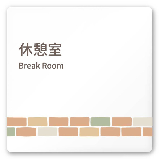 デザイナールームプレート ブロック 休憩室 白マットアクリル W150×H150 (AC-1515-HA-KM1-0118)