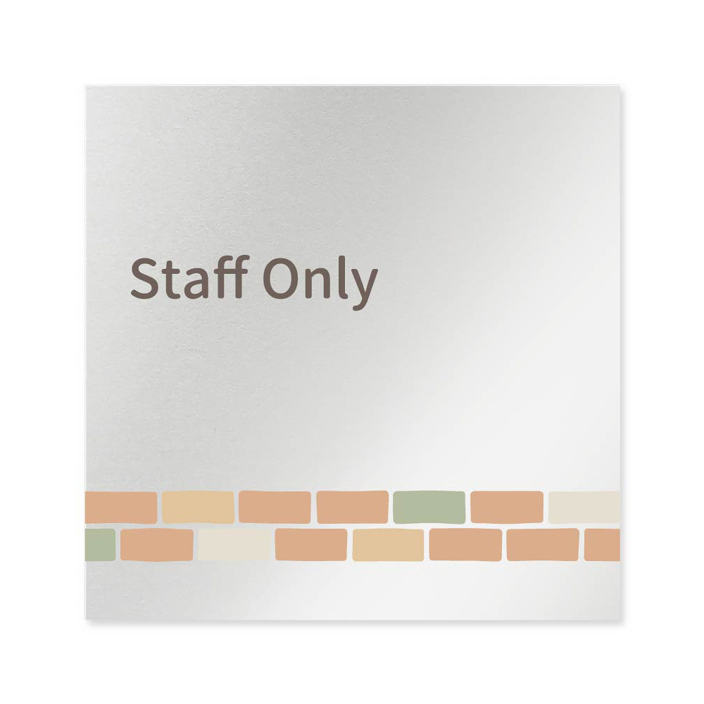 商品説明:デザイナールームプレート ブロック Staff only アルミ板 W150×H150 (AL-1515-HB-KM1-0110)