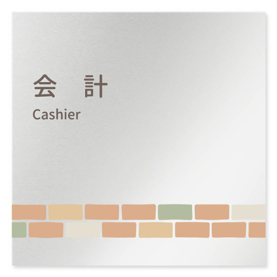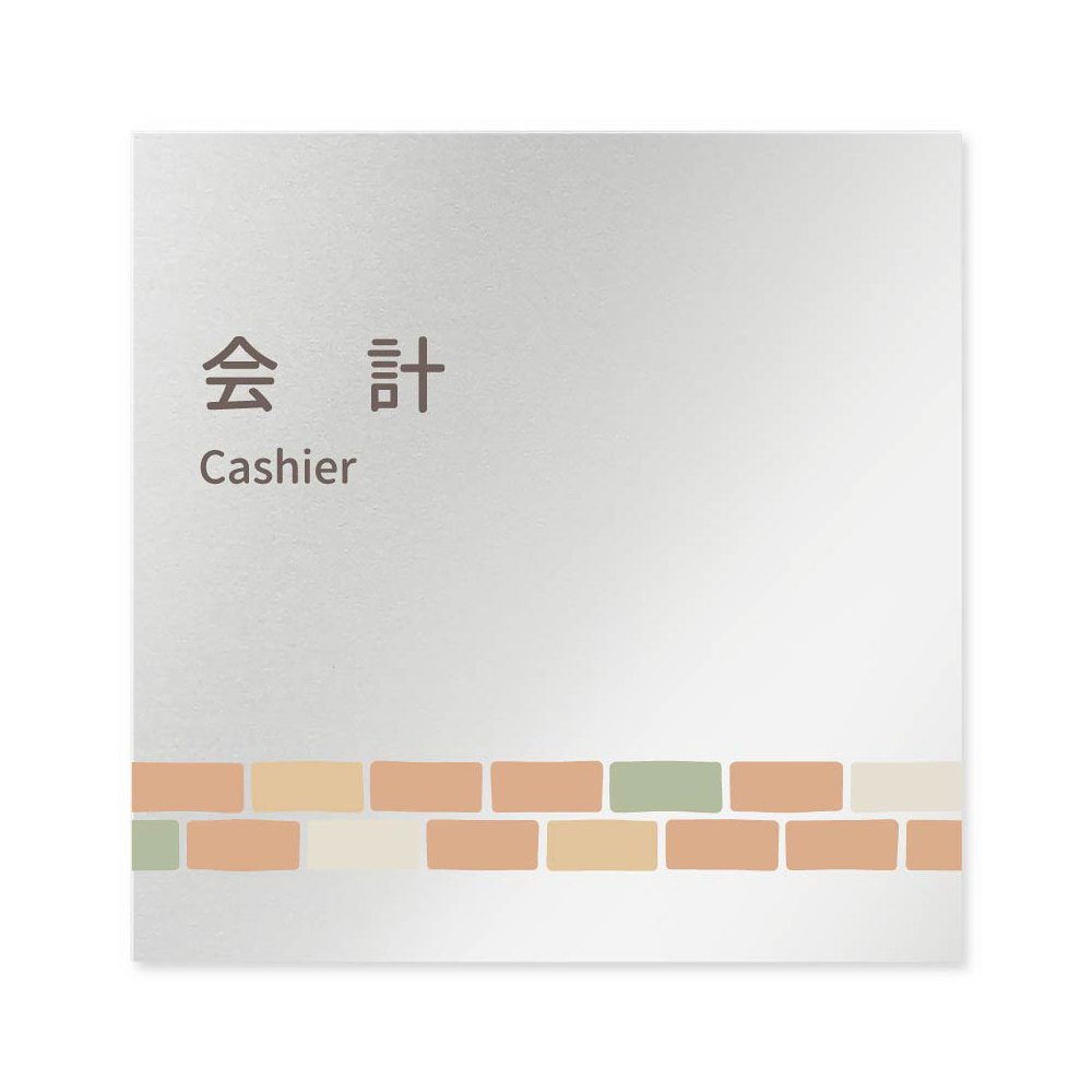 デザイナールームプレート ブロック 会計 アルミ板 W150×H150 (AL-1515-HB-KM1-0116)