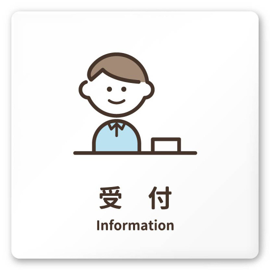 デザイナールームプレート ソフト 受付 白マットアクリル W150×H150 (AC-1515-HA-KM2-0112)