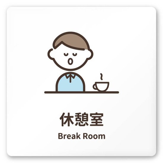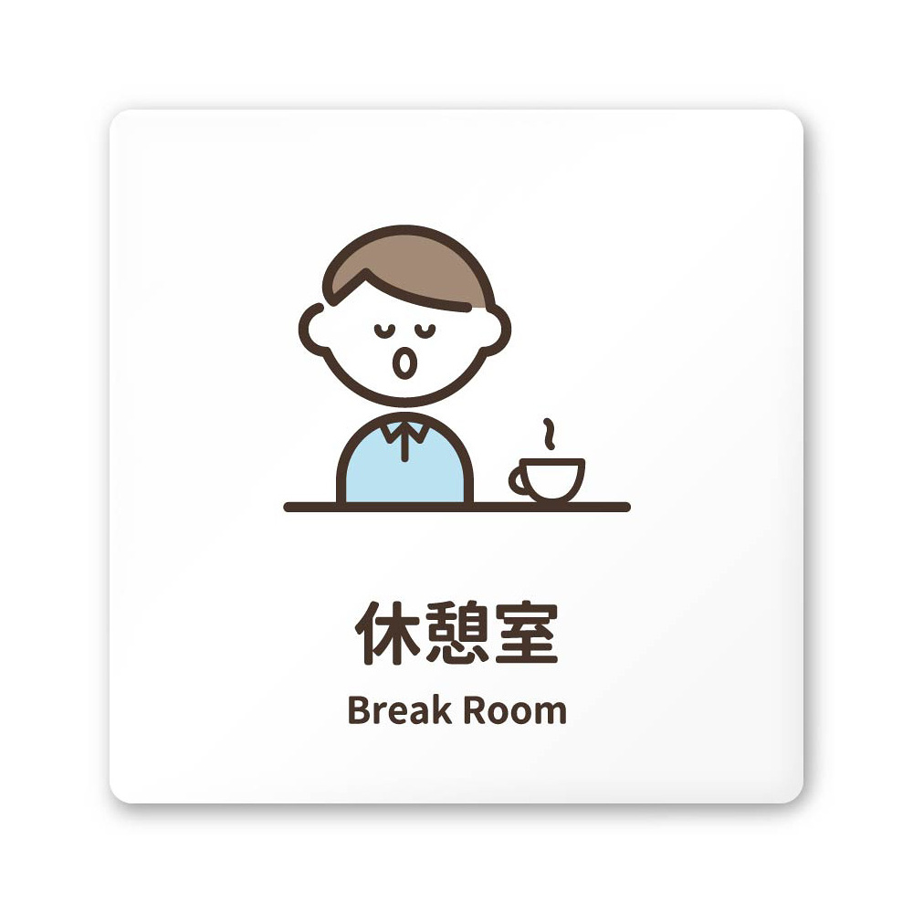 商品説明:デザイナールームプレート ソフト 休憩室 白マットアクリル W150×H150 (AC-1515-HA-KM2-0118)