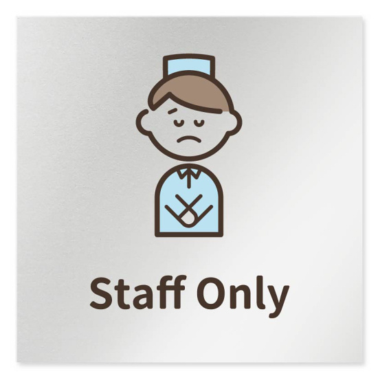 商品説明:デザイナールームプレート ソフト Staff only アルミ板 W150×H150 (AL-1515-HB-KM2-0110)