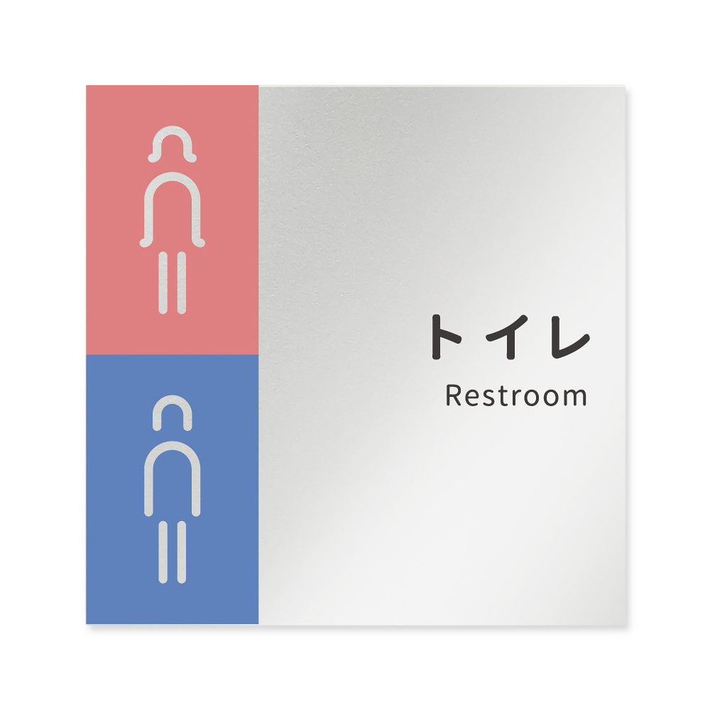 商品説明:デザイナールームプレート バイカラー トイレ1 アルミ板 W150×H150 (AL-1515-HB-NT1-0101)
