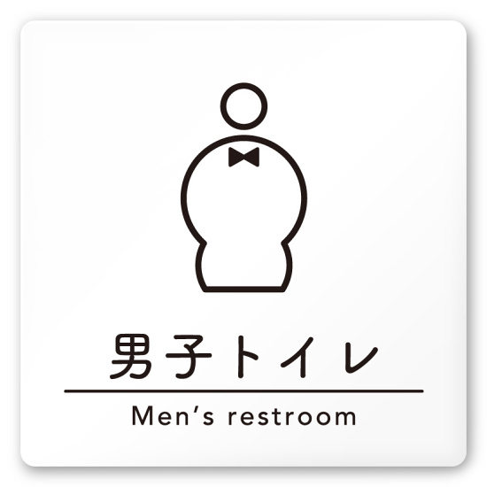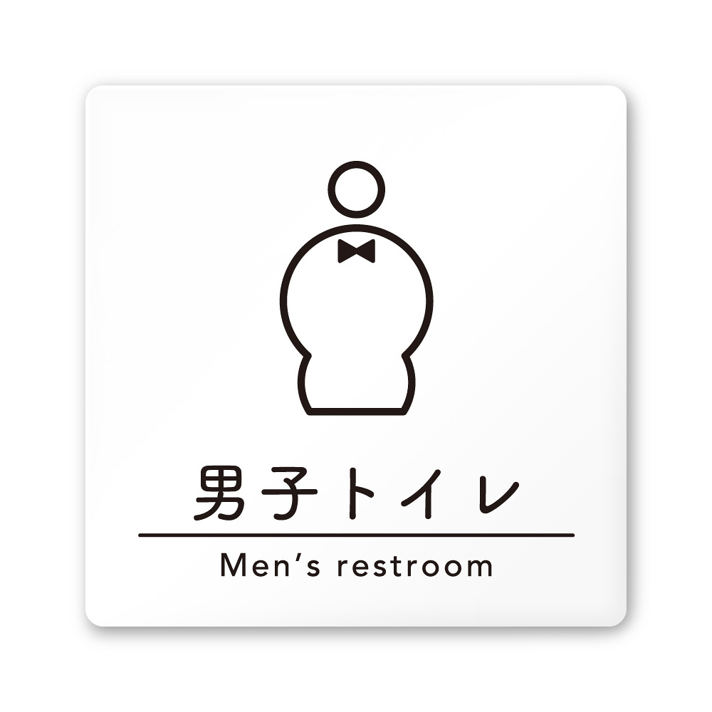 デザイナールームプレート 飲食店向け シンプル 男子トイレ1 白マットアクリル W150×H150 (AC-1515-RA-HS1-0103)