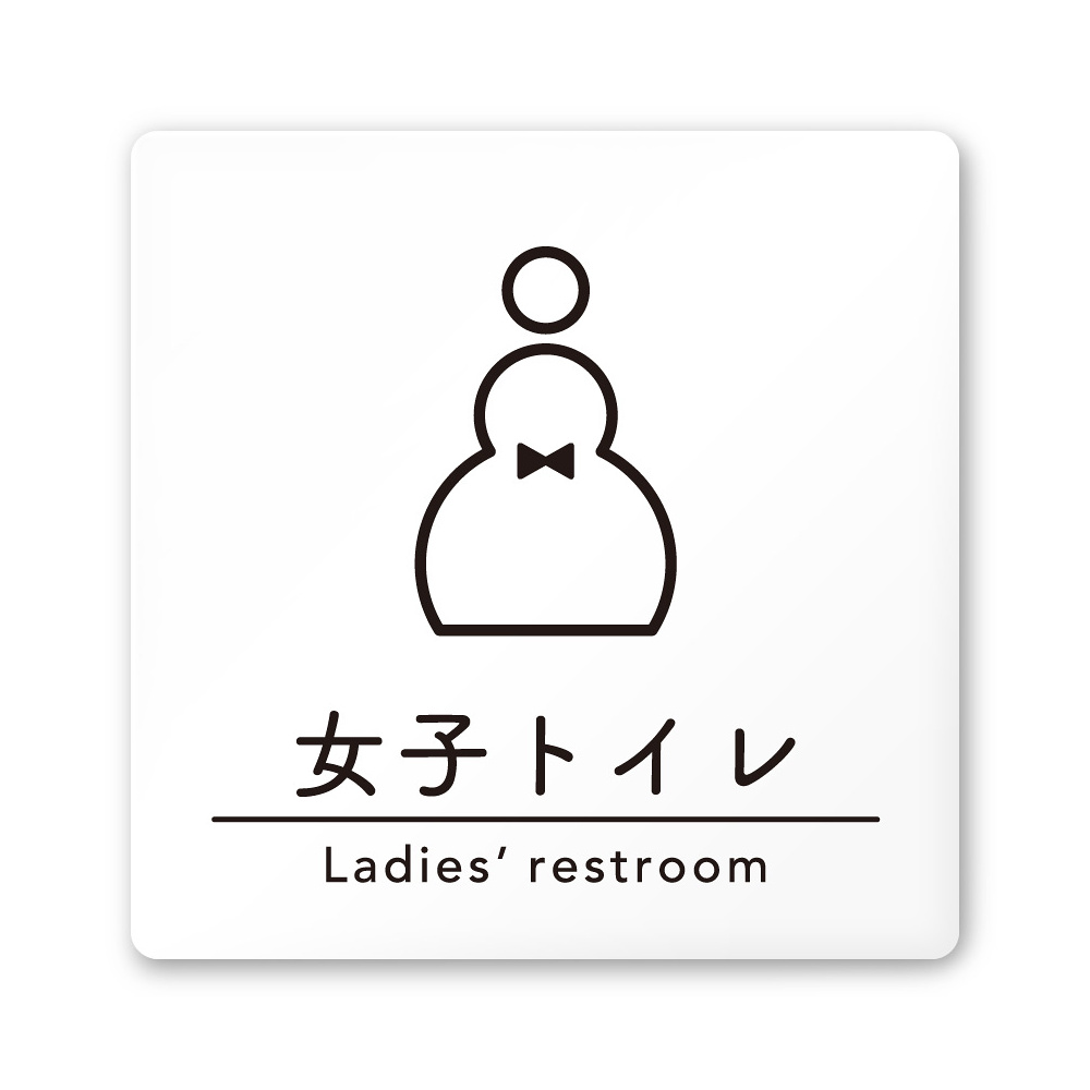 デザイナールームプレート 飲食店向け シンプル 女子トイレ1 白マットアクリル W150×H150 (AC-1515-RA-HS1-0105)